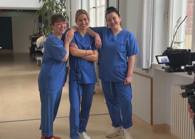 Für einzelne Szenen musste Marc sogar als werdende Mutter einspringen. Ein absoluter Spaß für alle, wir haben so sehr gelacht, dass uns fast die Tränen gekommen sind! Gleichzeitig entstanden aber auch sehr authentische Aufnahmen, die den praktischen Teil des Studiums perfekt widerspiegeln.