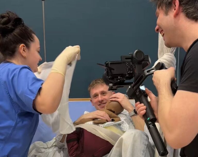 Gemeinsam mit André, dem stellvertretenden Abteilungsleiter der Station, der spontan als zusätzlicher Protagonist eingesprungen ist, konnten wir richtig authentische Pflegesituationen filmen. „So ein Kamerateam hatte ich noch nie bei der Arbeit, aber ich finde es wichtig, alles zu unterstützen, was den großartigen Teamzusammenhalt zeigt“, meinte er dazu.