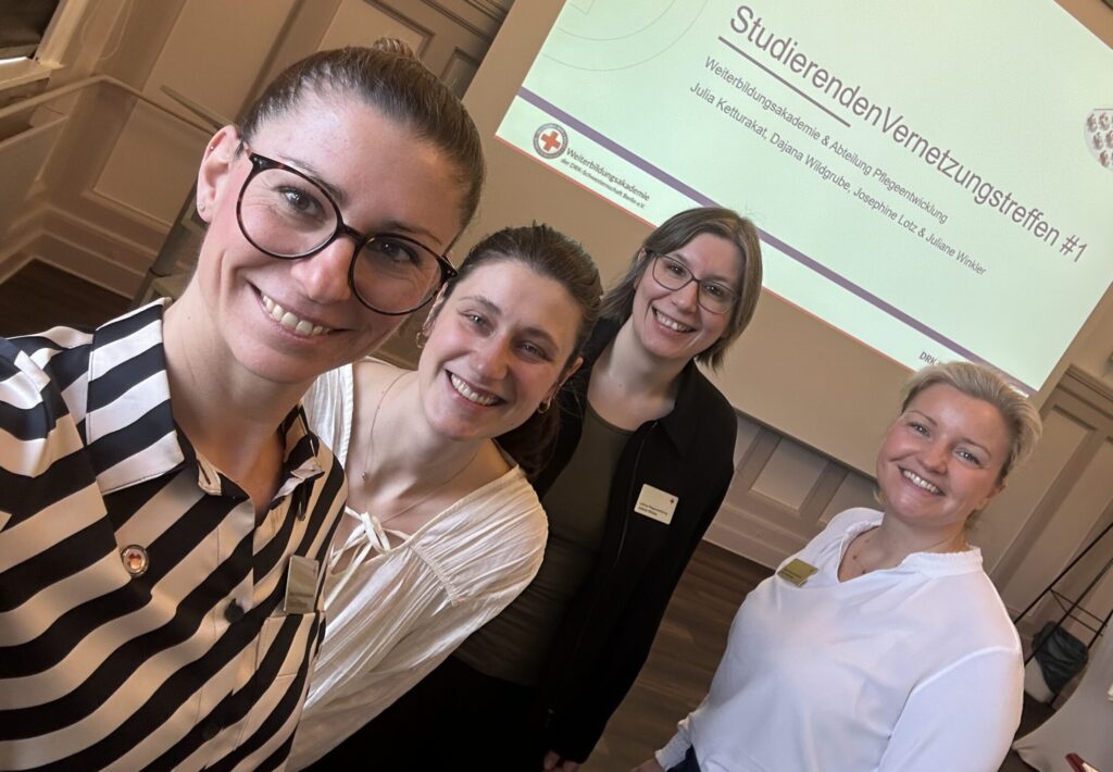 Kürzlich gab’s das erste StudierendenVernetzungsTreffen #1, mit 19 Studierenden der DRK Kliniken Berlin. Organisiert wurde das Ganze von der Weiterbildungsakademie der DRK Schwesternschaft Berlin e.V. und der Abteilung für Pflegeentwicklung. Ziel war es, sich untereinander über das Leben als Studierende*r mit einem Hauptberuf auszutauschen und die damit verbundenen Herausforderungen zu besprechen.